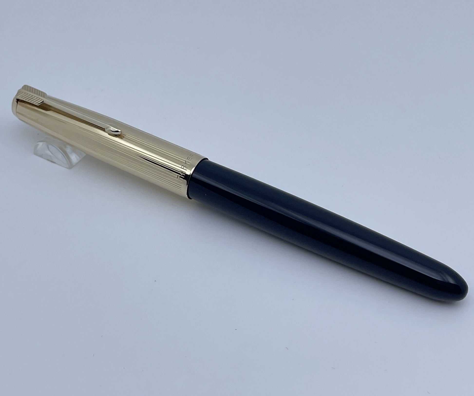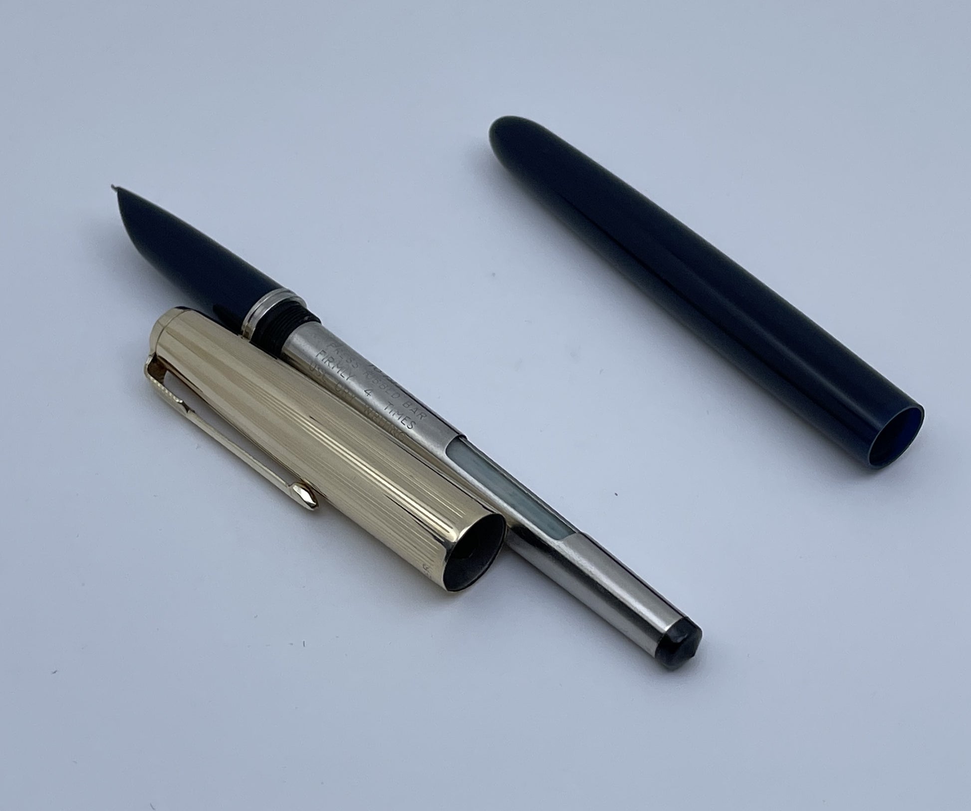 Vintage Parker 51 Aerometric Blue Barrel Gold Filled Cap Fountain Pen